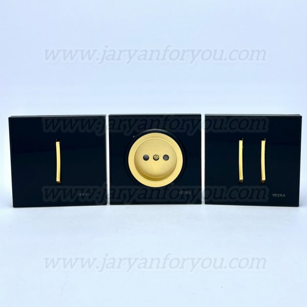 کلید و پریز ویرا خطی طلایی/مشکی/مشکی